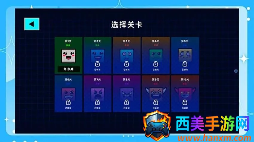 3、炫彩几何选择关卡界面,可以从第一个开始挑战,成功挑战就能解锁其他关卡