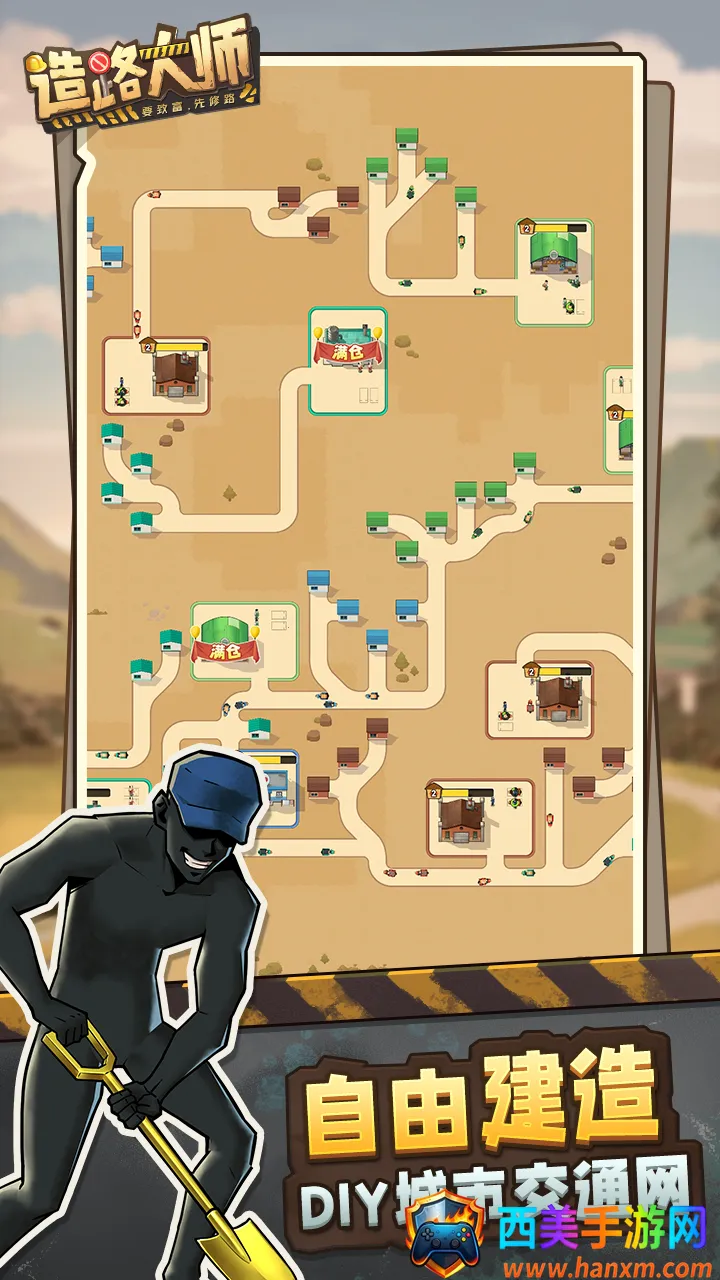 《造路大师》是一款别具特色的游戏。它以修路为主题,让玩家成为乡村基建指挥官,亲手打造城市交通网。其玩法简单易上手,拖动手指就能连接房屋商店等建筑,构建道路网络。游戏画面清新可爱,有着灵动鲜活的角色设定和轻松明快的背景音乐,关卡丰富多样,任务目标多变,持续激发玩家的建造热情。在这里,玩家能充分发挥策略思考能力,从泥泞小道开始,一步步将村落发展成繁荣都市。而且每完成一步都有成就感,看着车辆在自己铺就的道路上行驶,还能收获趣味称号。它主打轻量放置体验,无复杂数值体系和强制社交压力,专注于道路设计与视觉满足,是一款值得一玩的游戏。