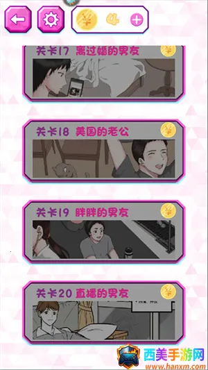 如果你正面临劈腿男朋友跟新欢谈了半个月又分了的情况,心里纠结该怎么办,不妨来试试这款《劈腿男朋友》游戏。在游戏里,你将化身敏锐的女友,通过观察场景细节,比如咖啡杯残留的口红印、手机相册异常的删除记录、聊天软件闪烁的未读红点等生活化线索,精准锁定男友劈腿的铁证。游戏节奏紧凑不拖沓,单局时长约3分钟,利用通勤、午休、睡前等碎片时间就能随时开启。它以真实生活为蓝本构建解谜逻辑,关卡设计短平快,无体力限制无强制等待。剧情非脸谱化,男友形象各具特点,解谜机制融合多元玩法,考验观察力、记忆力与常识判断力。全程无广告干扰,关卡免费开放还持续更新。通过玩这个游戏,能帮你梳理类似情感问题,说不定能给现实中的你一些启发,让你更好地处理感情困境。