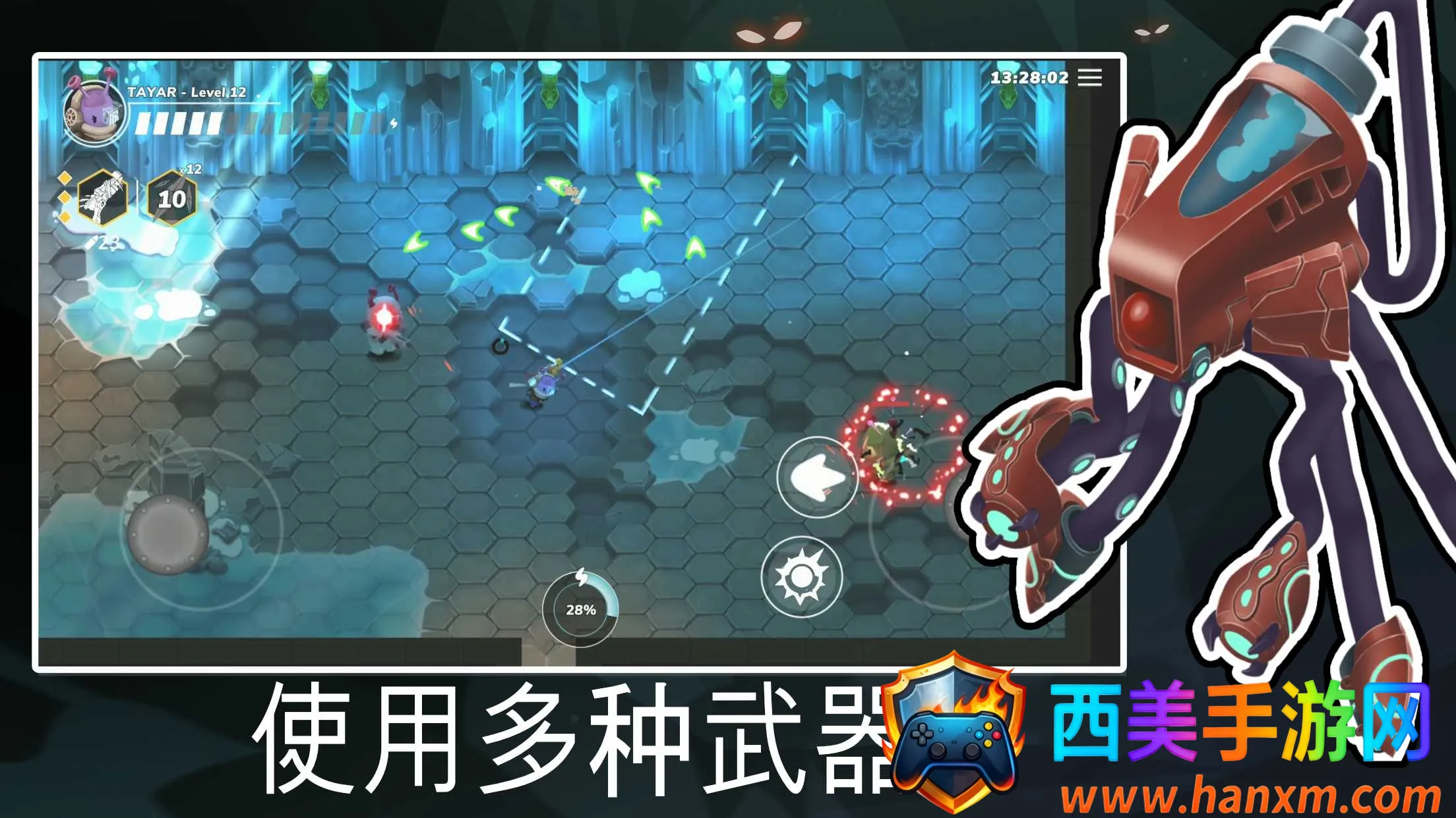 如果你正在寻找一款刺激好玩的射击游戏,那可不能错过“长沙超能机器人”。它是一款弹幕射击游戏,采用俯视视角,能让你清晰掌控全局。在机械奇幻世界里,你将扮演探险家塔亚,操控机器人体验射击快感。这里怪物横行,秘密众多,需要你想尽办法闯过重重房间。游戏玩法丰富,进入后屏幕左边有任务指示,比如撞碎发光宝箱。遇到武器拾取后,右侧圆盘可发射子弹攻击,滑动还能调整方向。冒险途中能找到升级晶片,插入武器可添加或更换能力。游戏特色满满,能自由组合适合自己玩法的武器,还有专门为竞速者设计的机制,通关速度快就能拿奖励。海量关卡等你挑战,不断尝试击败敌人。其亮点在于采用3D画质,让你沉浸其中,攻击怪物更有趣,完成任务还能积累经验提升角色技能,快来开启这场热血冒险吧!