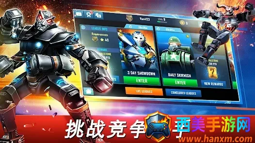 这是一款以机器人拳击对战为核心的3D格斗手游,画面设计精良,玩法丰富多样。游戏有着新高清特效与华丽格斗动作,3D建模的人物立体感十足,令人沉浸其中。玩家既可以选择强大机器人,与真人或电脑展开PK,感受不同格斗玩法,也能自由选择一对一或多人对战模式,每种模式都独具特色,带来非凡体验。众多邪恶机器登场,包含经典巨星与新竞争者,满足多样角色选择需求。游戏还支持本地Wi-Fi多人游戏,和朋友并肩作战,社交互动性大大增强。如果你喜欢机器人格斗游戏,那么这款游戏绝对不容错过!快来下载体验吧!