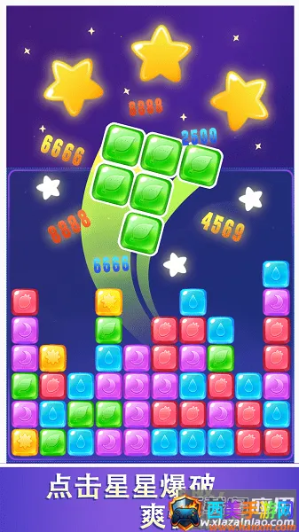 1. 绚丽场景:游戏画面特效纷呈,五彩缤纷的方块让消除过程成为一种视觉享受,背景画面十分华丽,带来极佳的视觉感受。