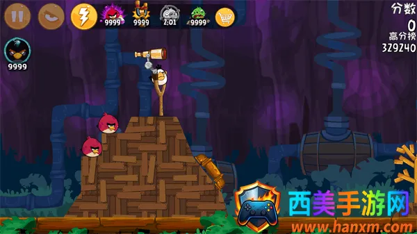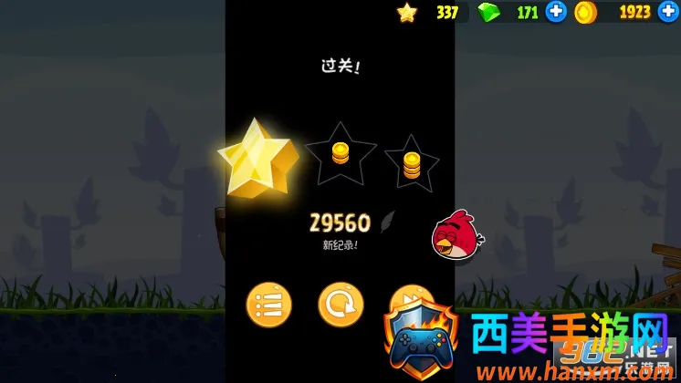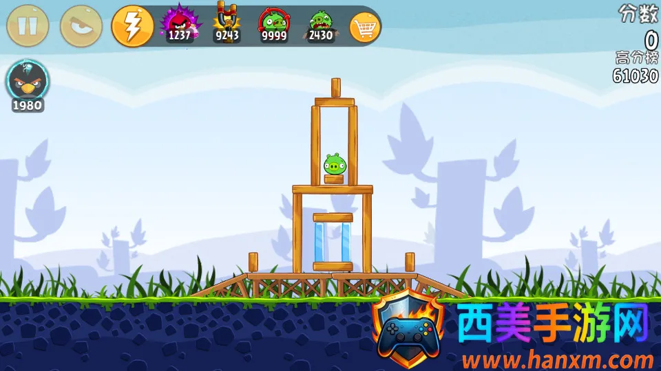 1、这第一关是比较经典的一关,游戏开局会送玩家三只小鸟,大家只需瞄准图中木板对角线的位置释放即可完成三星通关。