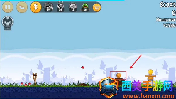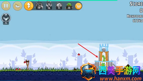 6、第六关全程仅需两只小鸟,过程中瞄准图中冰块最中间的位置就可以了。