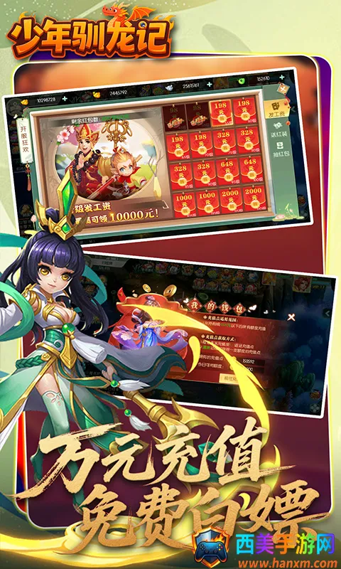 《少年驯龙记》是一款融合动作与角色扮演元素的手机游戏。它以仙侠世界为背景,玩家开局就能获得 VIP 身份和大量免费神装。游戏画面精美,操作流畅,有多样化可选角色,每个角色手感和体验独特,还能自由搭配技能形成个性化战斗风格。武器装备支持升级进化,提升属性。其创新的山海经异兽驯养系统很有特色,能收集培养神话生物共同冒险,支持多人组队挑战。福利丰富,如上线送很多,还有永久首续 1.5 折优惠,充值返利等,不肝不氪就能享受放置挂机异兽养成的乐趣,探索广阔仙侠世界,与怪物战斗、完成任务,体验精彩的修仙历险。