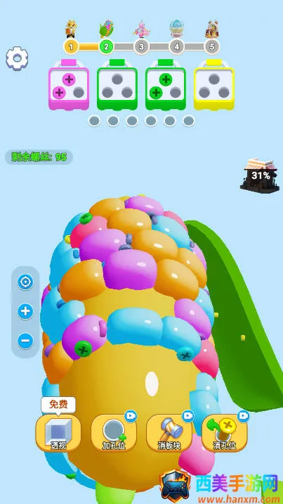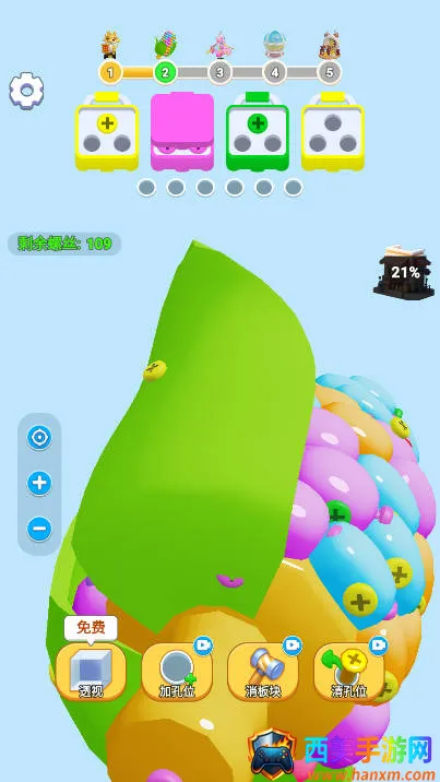 开心拔螺丝是一款超有趣的休闲益智闯关游戏。在游戏里,你要不断开启拧螺丝挑战,把各种物体上的螺丝拧开,将物体卸下来。它能满足你动手解谜的乐趣,锻炼观察力和解决问题的能力。玩法是按正确顺序拧螺丝,精准放进对应颜色盒子,数量准确才能通关。随着关卡推进,螺丝形状更复杂、颜色更丰富,挑战性和趣味性不断提升。每个关卡都有独特谜题,能让你沉浸其中。完成挑战不仅能解锁新关卡,还能获得丰厚奖励升级道具。操作简单易上手,适合各年龄段玩家。如果你正为开心拔螺丝第46关怎么过发愁,那就快来试试这款游戏吧。它能帮你一步步掌握技巧,顺利通关,享受拧螺丝解谜的快乐,解锁更多房产店铺、豪车座驾等惊喜内容。