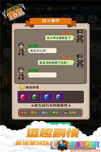 2. 丰富策略战斗玩法:招募角色组建队伍,通过精妙排兵布阵应对敌人,还有独创的随机技能释放战斗模式,不拼手速比策略,有先手暴击流、防闪回复流、幸运穿透流等多种流派。