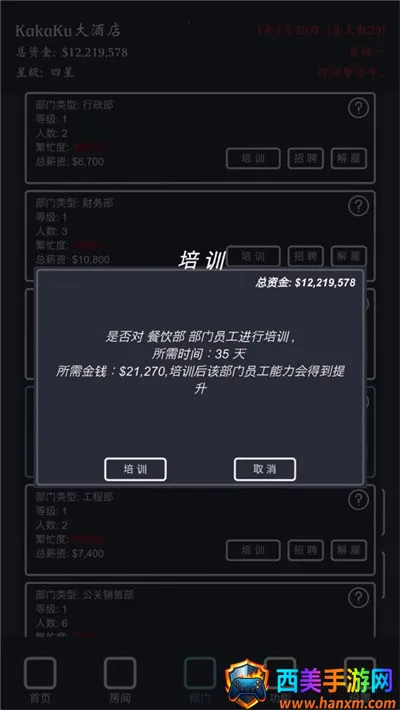 说说问题:跟了我十年的员工离职了,我却不能挽留他,希望作者能出个针对性的激励措施,最好可以对个人或者单个部门,整体培训之后工资成本上涨,用激励手段既能节省工资开销还能避免经常招聘,还有就是游戏节奏有点慢,三星到四星积累时间太长了后面估计更长,我得开着手机看好几个小时。