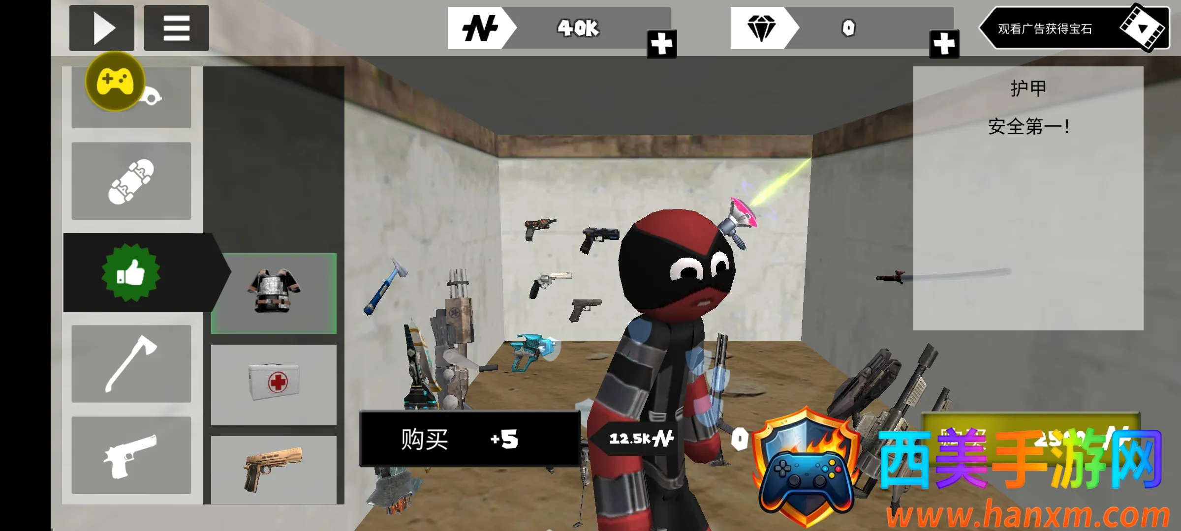 2、为火柴人英雄配备大量强力武器,战斗选择丰富多样。