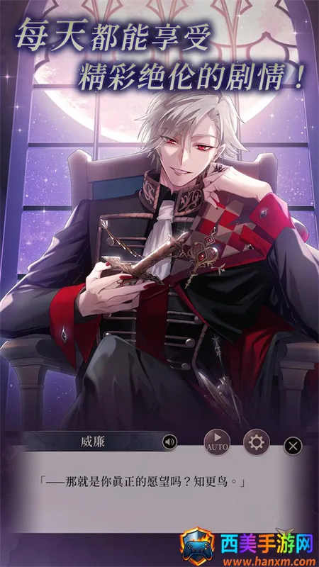游戏以19世纪英国为背景,剧情精致,人物塑造饱满,能带来沉浸式恋爱体验。玩法丰富,开始前虽需下载800MB数据资源,但可跳过动画等待。进入游戏后,先取昵称,再选剧情角色,通过剧情对话玩法与角色交流,点击AUTO还能自动对话浏览剧情。