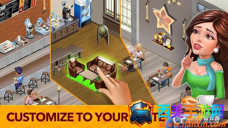 2. 个性化装修与经营:可根据喜好任意装修餐厅,招聘培训员工,制定菜单价格,还能用200多种装饰物品打造个性氛围咖啡馆。