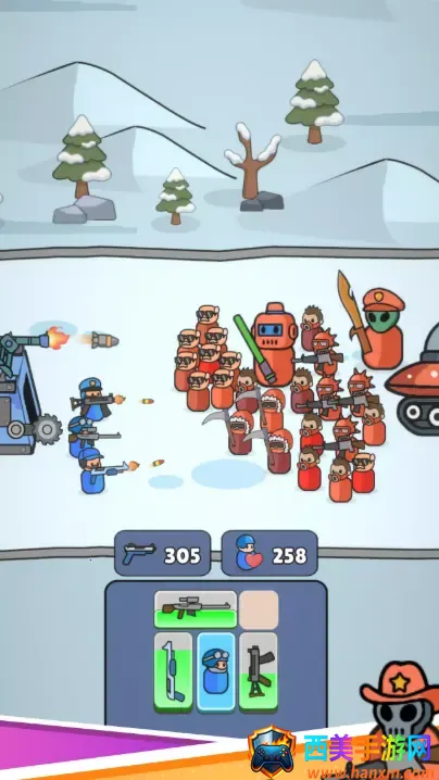 2. 有趣武器羁绊:步枪兵与狙击枪搭配可触发远程点杀,工兵和火箭筒组合能解锁爆破特效,增添战斗多样玩法。