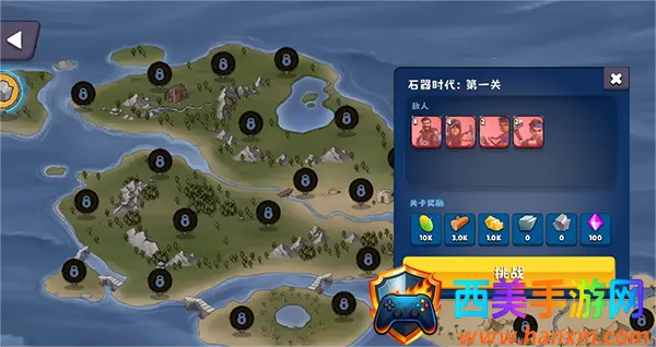 进入石器时代后,通过解锁制图学,从而解锁作战指挥所,进而解锁外出战斗系统。(作战指挥所在初始岛的正左方岛屿)。