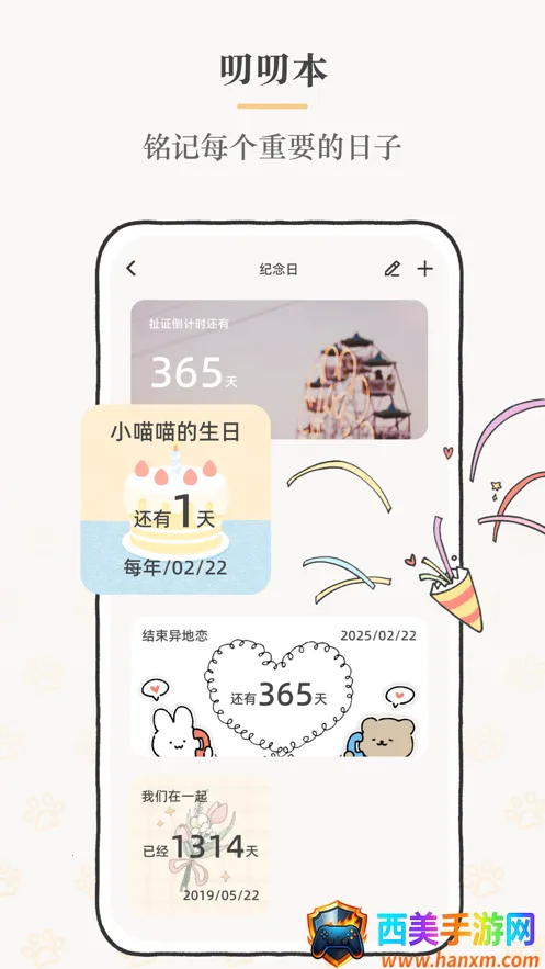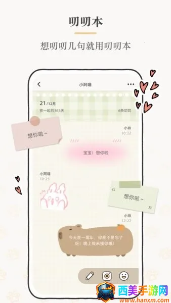 3. 多样记录功能:可记录甜蜜互动时刻、重要纪念日和恋爱点滴,还有两人专属心情日记能实时同步,时刻关注对方心情变化。