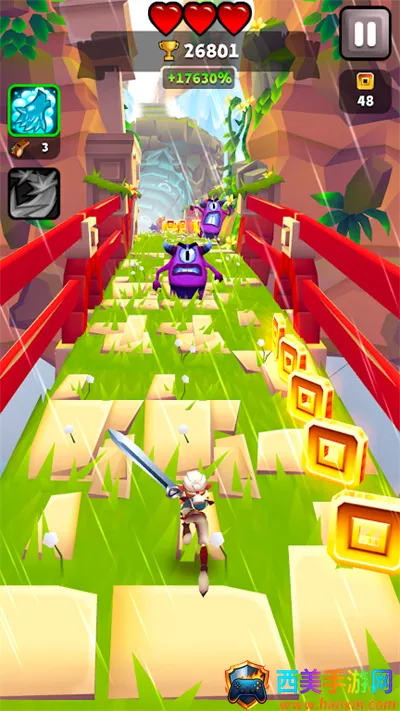 刀锋酷跑玩法丰富,乐趣十足。这里有多种奇幻道具助你探索神秘关卡,与邪恶巫师军团激烈对抗。超过百种传奇武器等你收集升级,涵盖剑、锤子、斧头各类。能私人定制人物外观属性,50多个不同盔甲和头饰任你选择。还有套装加成,装备越多奖励和属性加成越丰厚。完成关卡任务有巨大奖励,随机道具如点石成金、一击必杀等助你粉碎敌人。让你尽情享受跑酷与战斗的双重乐趣,开启独特冒险之旅。