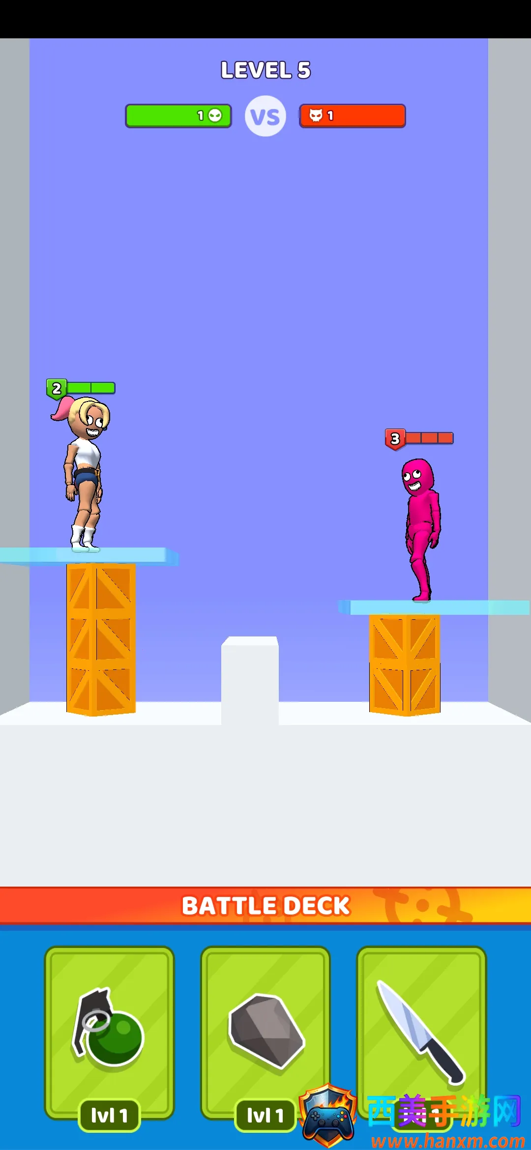 这款游戏充满魔性,是一款精准投掷的对战游戏。玩家能自由匹配对手,使用木棒、火箭炮、手雷等武器道具抛投攻击。游戏核心是物理计算射击精准度,小人是魔性表情包形象,超解压。玩家在界面下方选武器,每种武器性能和伤害效果独特。瞄准敌人头部伤害更高,成功消灭对手通关可获奖励,用奖励能在武器库买升级武器。关卡难度递增,很考验智商和精准度。其玩法新颖,操作简单但要精准爆头和计算弹道需练习技巧,非常耐玩,是打发时间、轻松解压的佳作,奖励也丰厚,值得一玩。